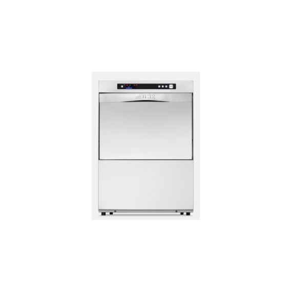 590x600x850, 380В, 5,9кВт, кассета 500х500, 4 программы 53/40/30/20 кас/час, T - сенсорная панель управления, двойная дверь, ванна с наклоном для полного слива, Thermostop - ополаскивание начинается только при достижении t 85 градусов, обтекаемая форма крышки от падения капель, легкие моечные и ополаскивающие рукава - эффективны при низком напоре воды. ОПЦИЯ: DDE - дозатор моющего средства