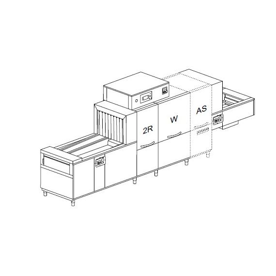 5100x985x1860/2200 мм, 380В, 39 кВт, AS6 - легкая предмойка с фильтром, DDE - дозатор моющих и ополас. средств, корпус нерж AISI 304, стандартная пальчиковая лента, DRF69 - сушка-консоль (9 кВт), HRF10 - компакт. теплорекуператор: для подключения к холодной воде (потреб. энергии, t и влажн. воздуха в помещен. ниже, чем при доп. мощности), ополаскивание усиленное 2+ (расход воды 190 л/час), деление на 2 части. ВЫБРАТЬ НАПРАВЛЕНИЕ ПРИ ЗАКАЗЕ!