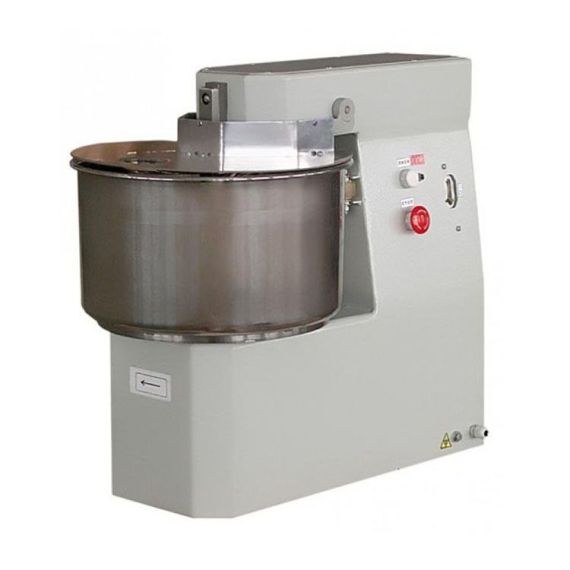 Тестомес спиральный Торгмаш Беларусь МТ-25-01 предназначен для замешивания теста с различной основой и консистенцией для выпечки хлебобулочных или кондитерских изделий на предприятиях общественного питания, торговли, в пекарнях и кондитерских. Модель оснащена защитной крышкой и щитком с микровыключателями. Вращение дежи вокруг своей оси и спирали внутри дежи обеспечивает тщательное перемешивание теста. Режимы работы: «1» – Машина работает на первой, более низкой скорости (обороты дежи – 12 об/мин., обороты спирали – 120 об/мин.) вращения инструмента. «2» – Машина работает на второй, более высокой скорости (обороты дежи – 24 об/мин., обороты спирали – 240 об/мин.) вращения инструмента. «Авт.» – После включения кнопкой «ПУСК» машина вначале работает на первой (более низкой) скорости в течение времени, обусловленного установкой аппарата реле времени на панели электрооборудования (при изготовлении машины на предприятии установлено 90 секунд). По истечении этого времени машина автоматически переключается на вторую