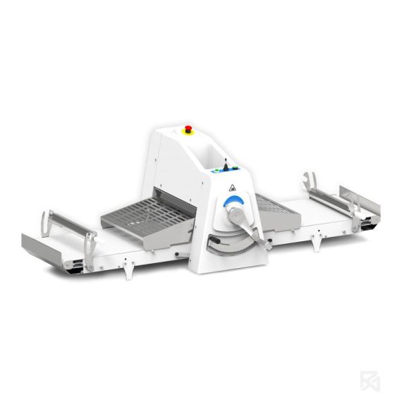 Конвейерная тестораскаточная машина Abat ТРМ-500/850предназначена для раскатки теста двумя валками с регулируемым зазором для получения пласта теста необходимой толщины. Используется в пекарнях, кондитерских, на предприятиях общественного питания и торговли, а также на предприятиях пищевой промышленности для раскатки различных видов теста: слоеного, дрожжевого и бездрожжевого, кондитерских мастик.ОСОБЕННОСТИ:Количество конвейерных транспортеров: 2Размер конвейерных транспортеров: 500х850 ммMакс. скорость раскатки: 0,5 м/секТолщина раскатываемого слоя: от 0,1 до 40 ммДлина валков: 505 ммДиаметр валков: 60 ммУправление реверсивным движением конвейерных лент и раскаточных валков осуществляетсяпри помощи джойстикаРабочая температура: +10…+45 ⁰СКоличество используемых скалок в системе намотки теста: 2Габаритные размеры: 2122х937х689 мм