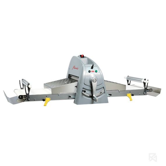 Конвейерная тестораскаточная машина Flamic SF500BDX1000 используется в хлебобулочных и кондитерских цехах для быстрой раскатки бездрожжевого, дрожжевого и слоеного теста.Корпус тестораскатки изготовлен из окрашенной стали.ОСОБЕННОСТИ:электромеханическая панель управления с дисплеемреверс (обратный ход) осуществляется при помощи джойстикарегулировка толщины листа теста от 0.2 до 35 ммДОПОЛНИТЕЛЬНЫЕ ХАРАКТЕРИСТИКИ:скорость конвейерной ленты на выходе 28 м/минлента размером 500х1000 ммдиаметр рабочего цилиндра 60 ммдлина ролика 500 мм