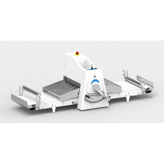 2122х935х689мм, Машина тестораскаточная ТРМ-500/850, конвейерная, толщина раскатки 0,1-40 мм, d валков 60 мм, длина валков 505 мм, 2 конвейерных транспортера размером 500х850 мм, 2 скалки в системе намотки, 0,55 кВт, 400В, настольная