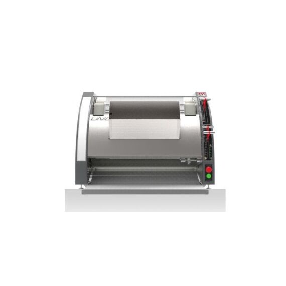 962*1082*708мм, 1,1кВт, 380В, 3 раскаточных валика из пищевого полиэтилентерефталата. Вес тестовых заготовок от 50 до 1200г. Выходная полка на скользящих направляющих. Сверхбыстрая смена лент без демонтирования машины. Материал ленты - woolltop. Управление справа. Производительность до 1200 шт/час