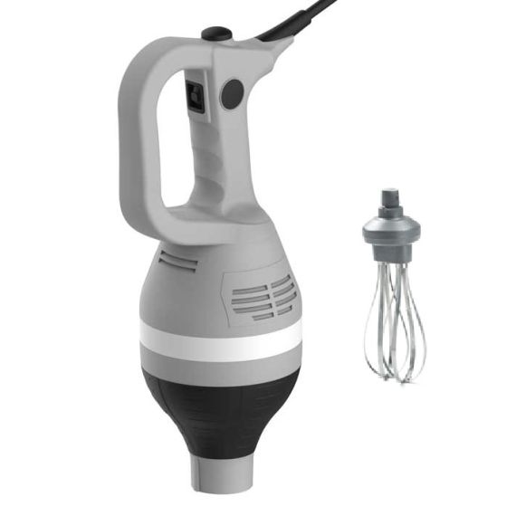 220В, 0,43кВт, вал 350мм, на 100 литров, вариатор скорости 125x190x377 mm (VT-контроль скорости со стабилизатором) + нож 450 мм (100x100x515 mm) + венчик (117x113x385 mm), скорость ножа 12500 оборотов в минуту, венчик 1800 оборотов в минуту