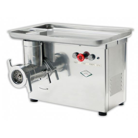 модернизированная! 520х560х420мм, 300 кг/ч, Мясорубка предназначена для измельчения мяса и рыбы на фарш,повторного измельчения котлетной массы и набивки колбас, производительность до 300 кг/час, функция реверс, облицовка из нерж. стали,380В, 1.44кВт, вес нетто -42кг, настольное исполнение, комплектация :нож подрезной-1шт, нож крестовой -2 шт, решетка 5 мм, решетка 9 мм,