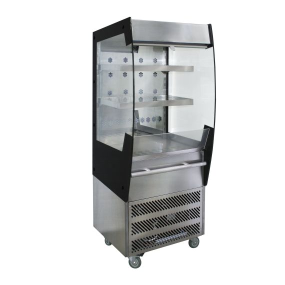 Напольная холодильная витрина-горка предназначена для демонстрации, кратковременного хранения и охлаждения продуктов и напитков на предприятиях общественного питания и торговли. Модель оснащена электронным управлением с дисплеем.