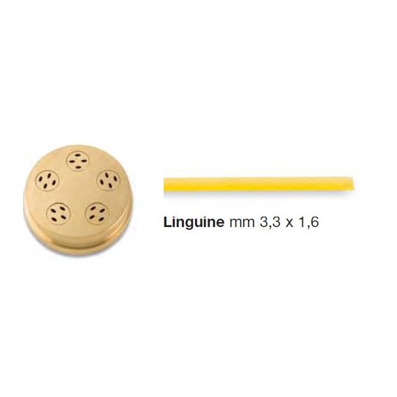 Насадка-матрица для производства макаронных изделий формы LINGUINE 3,3 x 1,6 мм. Предназначена для экструдеров Imperia Chef-in-Casa.