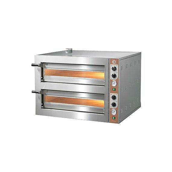 900х760х690мм, 9,2кВт, 380В, размер камеры: 620х620х140мм, вместимость 4+4 пиццы по 30см или 1+1 по 50см, двухкамерная моноблочная печь