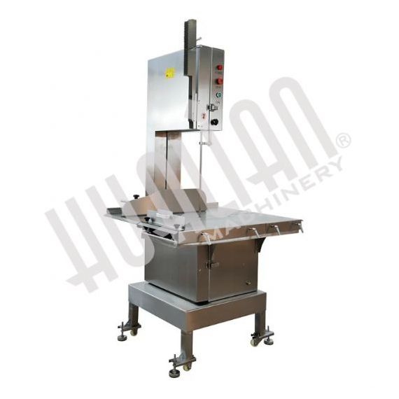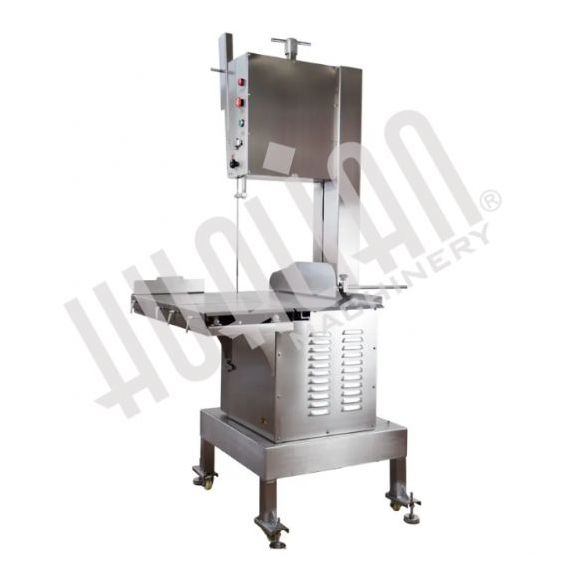Пила может использоваться для нарезки мяса на порционные куски. Толщина реза в данной модели составляет 0-380 мм, высота пропила 0-520 мм. Размер рабочей поверхности 950х750 мм. Расчетная производительность, в зависимости от характеристик сырья, составляет от 200 до 1600 кг/час.