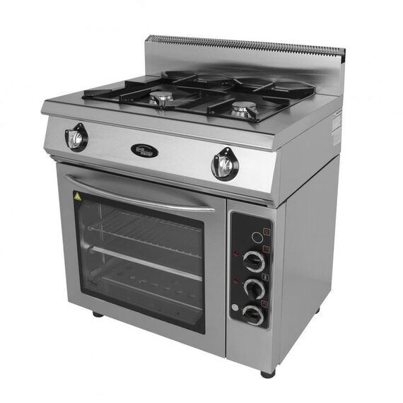 800х600х1050 мм, 2 профессиональные горелки класса Heavy Duty, газконтроль, комбинированная(сверху ТЭН, снизу горелка) духовка со стеклянной дверцей, подсветкой и таймером полностью из н/стали, настроена на метан (сопло на пропан в комплекте), г.нетто 800х600х1050, 127кг, г.брутто: 950х750х1200, 152кг. 17,5 кВт