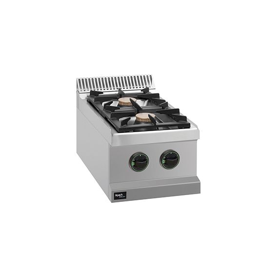 Газовая 2-конфорочная плита 700 серии APRG-47T предназначена для приготовления различных блюд в наплитной посуде.Столешница, вентиляционная решетка и передняя панель плиты выполнены из нержавеющей стали AISI 304, боковые и задняя панели - из нержавеющей стали AISI 430. Толщина металла 1 мм.Плита оснащена 2 съемными конфорками из эмалированного чугуна с латунной крышкой со стабилизатором пламени и защищенной пилотной горелкой. Мощность каждой конфорки 7 кВт. Поджиг пилотной горелки производится вручную.Предусмотрена отдельная чугунная решетка для каждой конфорки, размером 335х300 мм.Данная модель является настольной.Модель настроена на подключение к магистральному газу. Форсунки для подключения к баллонному газу в комплекте.Данную модель можно использовать как самостоятельно, так и в составе технологической линии.Общая газовая мощность плиты 14 кВт. Габариты 400х700х250 мм.