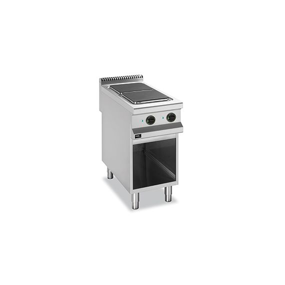 Электрическая 2-конфорочная плита 900 серии APRE-49P предназначена для приготовления различных блюд в наплитной посуде. Столешница, вентиляционная решетка и передняя панель плиты выполнены из нержавеющей стали AISI 304, боковые и задняя панели - из нержавеющей стали AISI 430. Толщина металла 1 мм.Плита оснащена 2 чугунными конфорками с защитой от перегрева, размером 300 х 300 мм. Мощность каждой конфорки 3 кВт.Каждая конфорка имеет 6 уровней мощности нагрева и снабжена световым индикатором работы нагревательного элемента.Данная модель укомплектована открытой подставкой с регулируемыми ножками.Данную модель можно использовать как самостоятельно, так и в составе технологической линии.Плита работает от сети с напряжением 380В, потребляемая мощность 6 кВт. Габариты 400х900х850 мм.