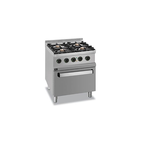 Газовая 4-конфорочная плита 700 серии APRG-77FE предназначена для приготовления различных блюд в наплитной посуде.Столешница, вентиляционная решетка и передняя панель плиты выполнены из нержавеющей стали AISI 304, боковые и задняя панели - из нержавеющей стали AISI 430. Толщина металла 1 мм.Плита оснащена 4 съемными конфорками из эмалированного чугуна с латунной крышкой со стабилизатором пламени и защищенной пилотной горелкой. Мощность каждой конфорки 7 кВт. Поджиг пилотной горелки производится вручную.Предусмотрена отдельная чугунная решетка для каждой конфорки, размером 335х300 мм.Данная модель оснащена статическим электрическим жарочным шкафом, мощностью 5,3 кВт. Размер жарочного шкафа 560х630х300 мм. Жарочный шкаф работает от сети с напряжением 380В.Модель настроена на подключение к магистральному газу. Форсунки для подключения к баллонному газу в комплекте.Плита оснащена регулируемыми ножками.Данную модель можно использовать как самостоятельно, так и в составе технологической линии.Общая газовая мощность