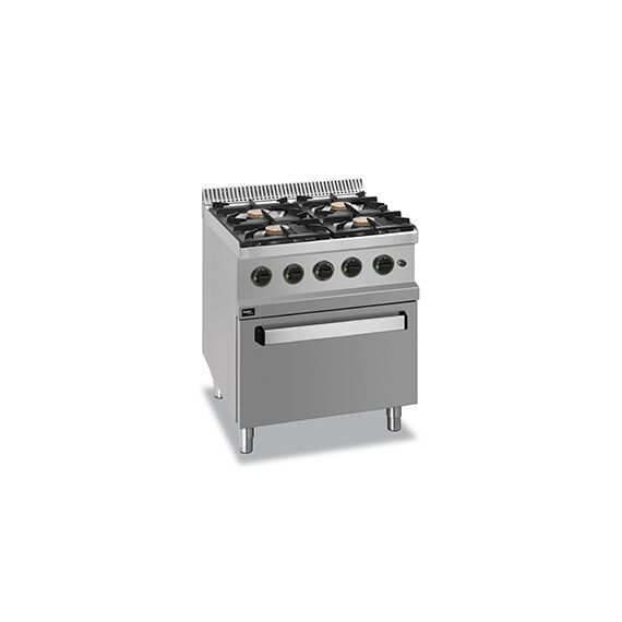 Газовая 4-конфорочная плита 700 серии APRG-77FG предназначена для приготовления различных блюд в наплитной посуде.Столешница, вентиляционная решетка и передняя панель плиты выполнены из нержавеющей стали AISI 304, боковые и задняя панели - из нержавеющей стали AISI 430. Толщина металла 1 мм.Плита оснащена 4 съемными конфорками из эмалированного чугуна с латунной крышкой со стабилизатором пламени и защищенной пилотной горелкой. Мощность каждой конфорки 7 кВт. Поджиг пилотной горелки производится вручную.Предусмотрена отдельная чугунная решетка для каждой конфорки, размером 335х300 мм.Данная модель оснащена статическим газовым жарочным шкафом, мощностью 6 кВт. Размер жарочного шкафа 560х630х300 мм. Жарочный шкаф оснащен пьезоподжигом горелки.Модель настроена на подключение к магистральному газу. Форсунки для подключения к баллонному газу в комплекте.Плита оснащена регулируемыми ножками.Общая газовая мощность плиты 34 кВт. Габариты 700х700х850 мм.