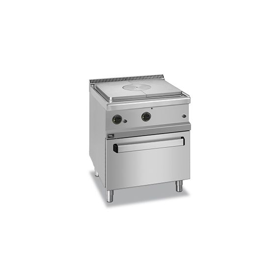 Газовая плита со сплошной поверхностью 700 серии APRGS-77FG предназначена для приготовления различных блюд в наплитной посуде разной формы и размера.Столешница, вентиляционная решетка и передняя панель плиты выполнены из нержавеющей стали AISI 304, боковые и задняя панели - из нержавеющей стали AISI 430. Толщина металла 1 мм.Плита оснащена 1 зоной нагрева. Сплошная поверхность со съемным центральным кольцом изготовлена из чугуна и имеет толщину 10 мм. Нагрев тепловой поверхности производится до 500°С в центре и до 200°С по краям, что позволяет одновременно готовить блюда при разных температурных режимах.Данная модель оснащена статическим газовым жарочным шкафом, мощностью 6 кВт. Размер жарочного шкафа 560х660х310 мм. Жарочный шкаф оснащен пьезоподжигом горелки.Плита оснащена регулируемыми ножками.Модель настроена на подключение к магистральному газу. Форсунки для подключения к баллонному газу в комплекте.Общая газовая мощность плиты 15 кВт. Габариты 700х700х850 мм.