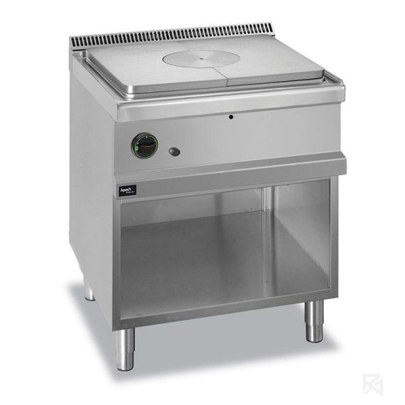 Газовая плита со сплошной поверхностью 700 серии APRGS-77P предназначена для приготовления различных блюд в наплитной посуде разной формы и размера.Столешница, вентиляционная решетка и передняя панель плиты выполнены из нержавеющей стали AISI 304, боковые и задняя панели - из нержавеющей стали AISI 430. Толщина металла 1 мм.Плита оснащена 1 зоной нагрева. Сплошная поверхность со съемным центральным кольцом изготовлена из чугуна и имеет толщину 10 мм. Нагрев тепловой поверхности производится до 500°С в центре и до 200°С по краям, что позволяет одновременно готовить блюда при разных температурных режимах.Данная модель укомплектована открытой подставкой с регулируемыми ножками.Модель настроена на подключение к магистральному газу. Форсунки для подключения к баллонному газу в комплекте.Данную модель можно использовать как самостоятельно, так и в составе технологической линии.Газовая мощность плиты 9 кВт. Габариты 700х700х850 мм.