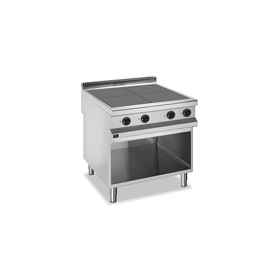Электрическая 4-конфорочная плита 900 серии APRE-89QP (с низкими конфорками) предназначена для приготовления различных блюд в наплитной посуде. Столешница, вентиляционная решетка и передняя панель плиты выполнены из нержавеющей стали AISI 304, боковые и задняя панели - из нержавеющей стали AISI 430. Толщина металла 1 мм.Плита оснащена 4 чугунными конфорками с защитой от перегрева, размером 300х300 мм. Мощность конфорок: 4х2,5 кВт.Каждая конфорка имеет 6 уровней мощности нагрева и снабжена световым индикатором работы нагревательного элемента.Данная модель укомплектована открытой подставкой с регулируемыми ножками.Данную модель можно использовать как самостоятельно, так и в составе технологической линии.Плита работает от сети с напряжением 380В, потребляемая мощность 10 кВт. Габариты 800х900х850 мм.