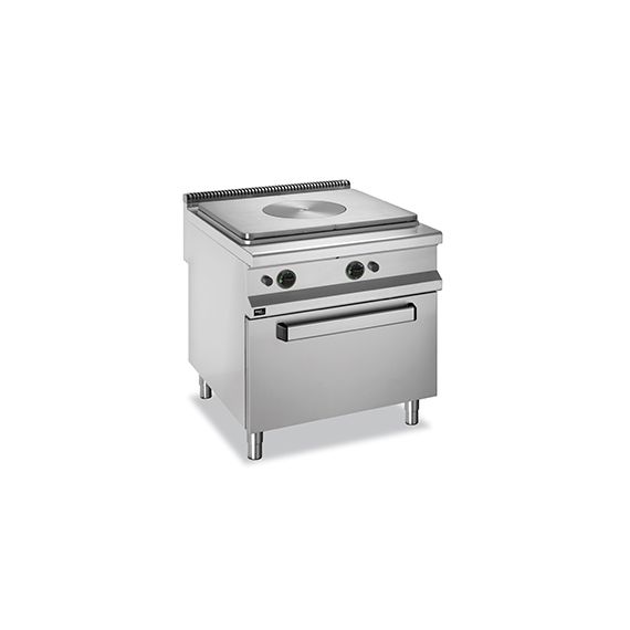 Газовая плита со сплошной поверхностью 900 серии APRGS-89FG предназначена для приготовления различных блюд в наплитной посуде разной формы и размера.Столешница, вентиляционная решетка и передняя панель плиты выполнены из нержавеющей стали AISI 304, боковые и задняя панели - из нержавеющей стали AISI 430. Толщина металла 1 мм.Плита оснащена 1 зоной нагрева. Сплошная поверхность со съемным центральным кольцом изготовлена из чугуна и имеет толщину 10 мм. Нагрев тепловой поверхности производится до 500°С в центре и до 200°С по краям, что позволяет одновременно готовить блюда при разных температурных режимах.Данная модель оснащена статическим газовым жарочным шкафом, мощностью 7 кВт. Размер жарочного шкафа 540х695х320 мм. Жарочный шкаф оснащен пьезоподжигом горелки.Плита оснащена регулируемыми ножками.Модель настроена на подключение к магистральному газу. Форсунки для подключения к баллонному газу в комплекте.Общая газовая мощность плиты 19 кВт. Габариты 800х900х850 мм.