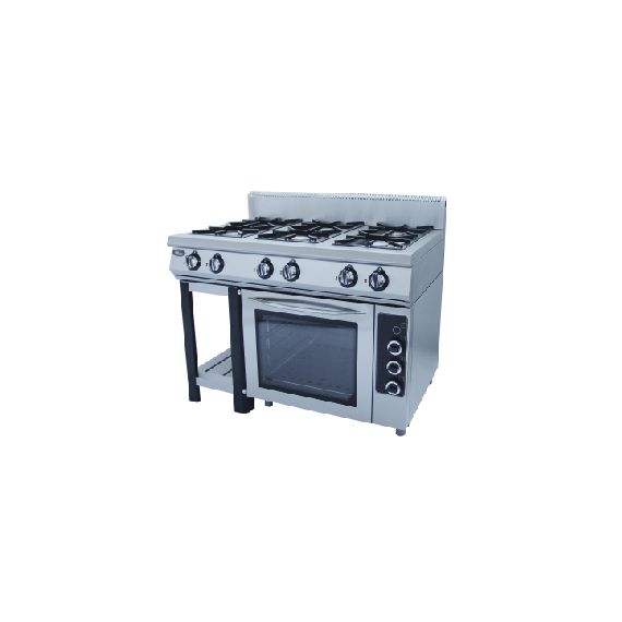 1180x800x1050 мм, в дополнение к плите 50004 - духовка 4хGN 2/1 из н/стали, расстояние между противнями 90 мм, с таймером, подсветкой, дверь духовки со стеклом(закаленным): сверху в духовке ТЭН 1.5 kW, снизу ТЭН 3kW, управление температурой в духовке с помощью 2-х термостатов 50-300 С, духовка полностью из н/стали, горелки плиты 6 профессиональных горелок класса Heavy Duty , общая газовая мощность плиты 44 кВт, съемная конструкция плиты и духовки, габариты плиты с духовкой, настроена на метан (сопло на пропан в комплекте), г.нетто: 1180x800x1050, 170кг, г.брутто: 1250х880х1250, 208 кг.