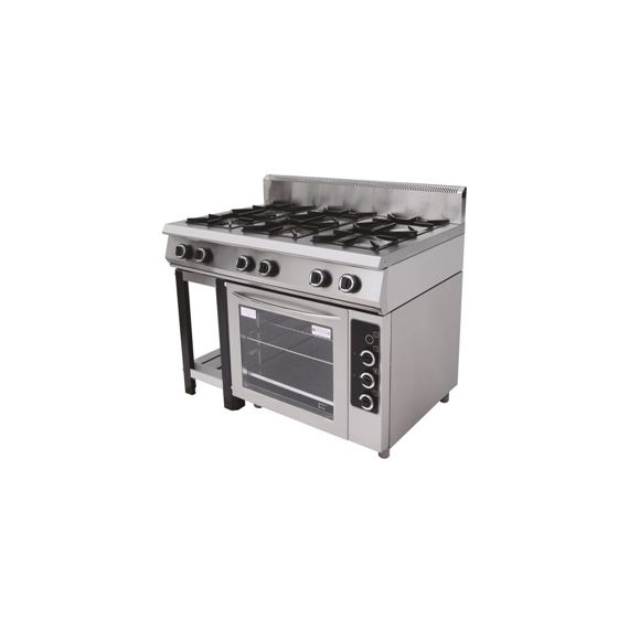 Плита газовая KAYMAN предназначена для тепловой обработки пищевых продуктов в наплитной посуде на предприятиях общественного питания, как самостоятельно, так и в составе технологических линий. Все функциональные части плиты легкодоступны с фронтальной стороны. Все корпусные элементы изготовлены из пищевой нержавеющей стали, что позволяет использовать данную установку в системе общественного питания.Изделие предназначено для эксплуатации в отапливаемом помещении, с диапазоном температур окружающего воздуха от +10°С до +50 °С, относительной влажности (без конденсации) воздуха 80% при 20°С, при условии гарантированного проветривания или наличия вытяжной вентиляции, атмосферном давлении от 84кПа до 107 кПа (от 630мм рт.ст. до 800 мм рт.ст.).6 профессиональных горелок класса Heavy Duty, газовая мощность плиты 48,5 kW, газ/контроль, полностью из н/стали, духовка 4хGN 2/1 из н/стали, дверь духовки со стеклом(закаленное), духовка с таймером 120 минут и подсветкой: сверху ТЭН 1.5 kW, снизу горелка 4.5 kW полностью из