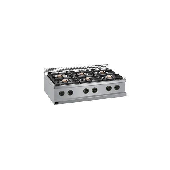 Газовая 6-конфорочная плита 700 серии APRG-117T предназначена для приготовления различных блюд в наплитной посуде.Столешница, вентиляционная решетка и передняя панель плиты выполнены из нержавеющей стали AISI 304, боковые и задняя панели - из нержавеющей стали AISI 430. Толщина металла 1 мм.Плита оснащена 6 съемными конфорками из эмалированного чугуна с латунной крышкой со стабилизатором пламени и защищенной пилотной горелкой. Мощность каждой конфорки 7 кВт. Поджиг пилотной горелки производится вручную.Предусмотрена отдельная чугунная решетка для каждой конфорки, размером 335х300 мм.Данная модель является настольной.Модель настроена на подключение к магистральному газу. Форсунки для подключения к баллонному газу в комплекте.Данную модель можно использовать как самостоятельно, так и в составе технологической линии.Общая газовая мощность плиты 42 кВт. Габариты 1100х700х250 мм.
