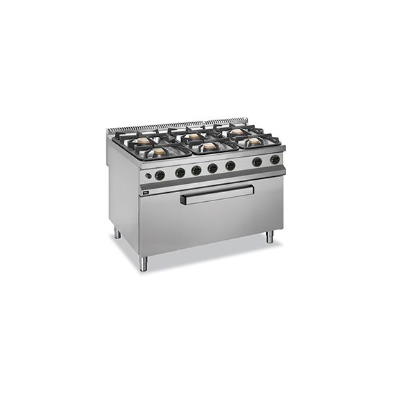 Газовая 6-конфорочная плита 900 серии APRG-129FMG предназначена для приготовления различных блюд в наплитной посуде.Столешница, вентиляционная решетка и передняя панель плиты выполнены из нержавеющей стали AISI 304, боковые и задняя панели - из нержавеющей стали AISI 430. Толщина металла 1 мм.Плита оснащена 6 съемными конфорками из эмалированного чугуна с латунной крышкой со стабилизатором пламени и защищенной пилотной горелкой. Мощность конфорок: 3x7 кВт+3x11 кВт. Поджиг пилотной горелки производится вручную.Данная модель оснащена газовым жарочным шкафом, мощностью 10 кВт. Размер жарочного шкафа 1000х700х300 мм. Модель настроена на подключение к магистральному газу. Форсунки для подключения к баллонному газу в комплекте.Плита оснащена регулируемыми ножками.Данную модель можно использовать как самостоятельно, так и в составе технологической линии.Общая газовая мощность плиты 64 кВт. Габариты 1200х900х850 мм.