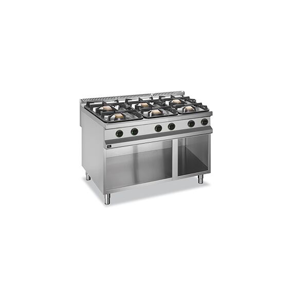 Газовая 6-конфорочная плита 900 серии APRG-129P предназначена для приготовления различных блюд в наплитной посуде.Столешница, вентиляционная решетка и передняя панель плиты выполнены из нержавеющей стали AISI 304, боковые и задняя панели - из нержавеющей стали AISI 430. Толщина металла 1 мм.Плита оснащена 6 съемными конфорками из эмалированного чугуна с латунной крышкой со стабилизатором пламени и защищенной пилотной горелкой. Мощность конфорок: 3x7 кВт+3x11 кВт. Поджиг пилотной горелки производится вручную.Данная модель оснащена открытой подставкой с регулируемыми ножками.Данную модель можно использовать как самостоятельно, так и в составе технологической линии.Общая газовая мощность плиты 54 кВт. Габариты 1200х900х850 мм.