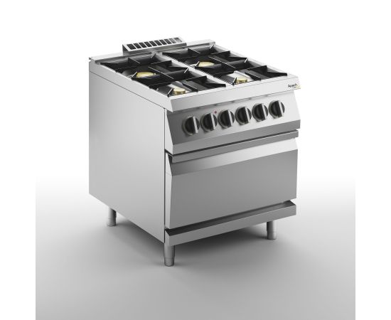 800х730х900 мм, 143 кг, газ 24 кВт, 380 В, 4 конфорки, на электрическом духовом шкафу на 6 кВт