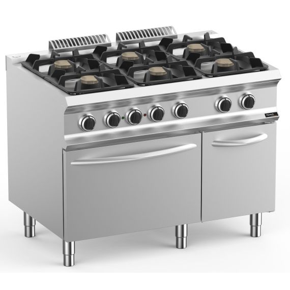 1100х730х850 мм, 134 кг, газ 42 кВт, 6 конфорок, 380 В, на электрическом духовом шкафу на 5,3 кВт