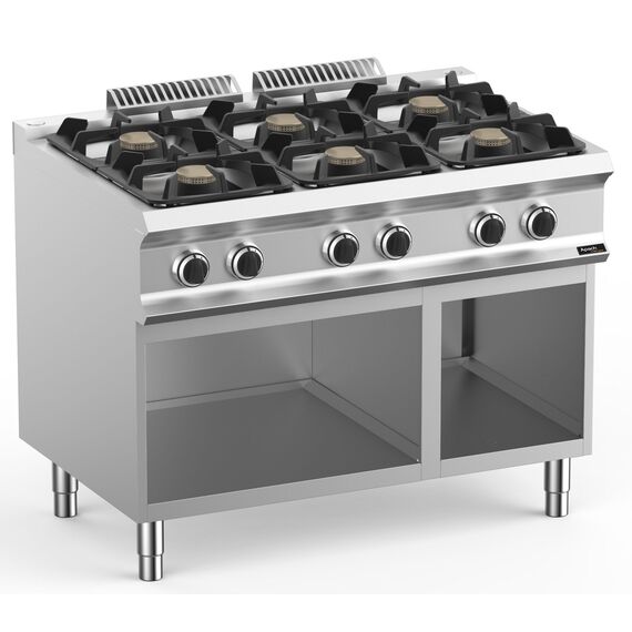 1100х730х850 мм, 94 кг, газ 33 кВт, на открытой подставке, 6 конфорок