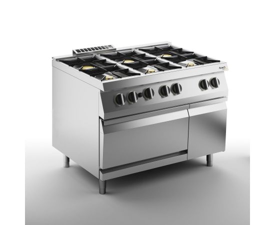 1200х730х900 мм, 191 кг, газ 44 кВт, 380 В, 6 конфорок, на шкафу газ+нейтраль на 8 кВт