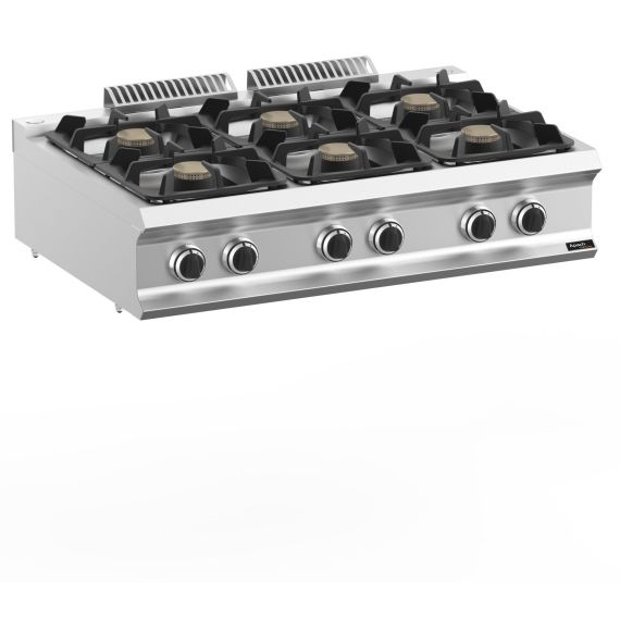 1200х900х250 мм, 99 кг, газ 54 кВт, 6 конфорок 375х372 мм, настольная