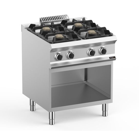 800х900х850 мм, 80 кг, газ 40 кВт, 4 конфорки 375х372 мм, на открытой подставке