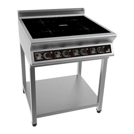 700х700х870 Плита индукционная на открытой подставке, 4 конфорки мощностью 4х3,5кВт, электронная панель управления с цифровой индикацией, 13 уровней нагрева, таймер до 180мин., съемный жировой фильтр, корпус из н.с. AISI 304, регулируемые по высоте ножки, рабочая поверхность - стеклокерамика 6мм, 14 кВт, 380В.