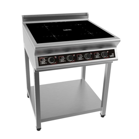 800х900х870 Плита индукционная на открытой подставке, 4 конфорки мощностью 4х3,5кВт, электронная панель управления с цифровой индикацией, 13 уровней нагрева, таймер до 180мин., съемный жировой фильтр, корпус из н.с. AISI 304, регулируемые по высоте ножки, рабочая поверхность - стеклокерамика 6мм, 14 кВт, 380В.