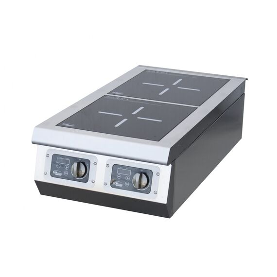 420х817х275мм, электрическая, индукционная, 2 зоны нагрева, размер конфорки 320х340 мм, сенсорное и механическое управление с ЖК-дисплеем, увеличенная в диаметре катушка, 10 уровней мощности, мощность 1 зоны 3.5 кВт, электронный таймер 0-24 ч, максимальный допустимый вес на 1 конфорку до 30 кг, min диаметр посуды 100 мм, выполнена полностью из нерж.стали, разборная конструкция плиты и подставки, 7 кВт, габариты нетто 450х800х275, 29кг, брутто 450х860х330, 31кг