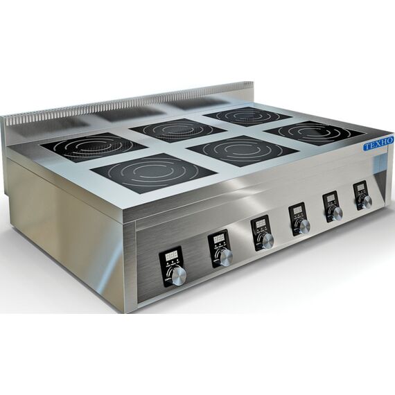 1200х900х400мм, Плита 6конфорочная плоская, столешница из нержавеющей стали марки AISI 304 толщиной 1,2 мм, корпус из нержавеющей стали марки AISI 430 толщиной 0,8мм. Мощность 6х5 кВт, борт высотой 100мм, питание 380В. Толщина стеклокерамики 6мм. 9 уровней мощности. Поставляется в собранном виде., для ИПП-640145 подходят подставки СПИ-033/1208, СПИ-837/1208, СПИ-834/1208, МН-90/1209, МН-91/1209