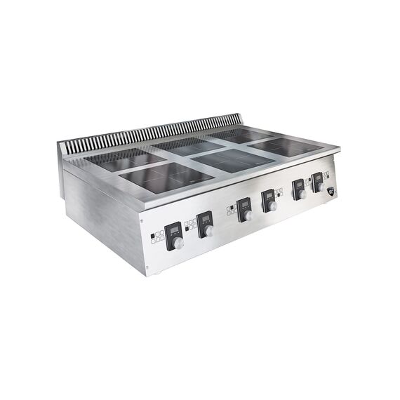 1200х760х400мм, Плита 6конфорочная плоская, столешница из нержавеющей стали марки AISI 304 толщиной 1,2 мм, корпус из нержавеющей стали марки AISI 430 толщиной 0,8мм. Мощность 6х3,5 кВт, борт высотой 70мм, питание 380В. Толщина стеклокерамики 6мм. 9 уровней мощности, безимпульсная работа. Поставляется в собранном виде. подставки: ПО-22/1207