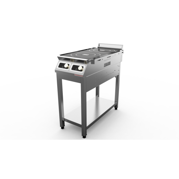 ЧЕЛЯБТОРГТЕХНИКА Плита электрическая индукционная ПЭИ-2D, 2 конфорки; общая потребляемая мощность- 7. 0кВт. Напряжение 220/380, В. Время закипания 1л воды примерно 3,5 минуты. Корпус плиты электрической индукционной выполнен полностью из нерж. cтали марки AISI 430 толщиной 1,2мм. Каркас разборный выполнен из профильных элементов нерж. стали марки AISI 430 толщиной 1,2 мм. , ножки из нерж. трубы 40х40 марки AISI 430. Каждая плита имеет боковые планки для обеспечения вентиляции. Плиты оснащены регулируемыми по высоте опорами. Масса плиты 35кг. Габаритные размеры: 445х900х860,мм.