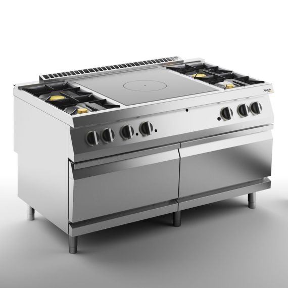 1600х900х900 мм, 300 кг, газ 60 кВт, 1 зона концентрического нагрева по центру + 2 горелки слева + 2 горелки справа, на газовом духовом шкафу на 16 кВт