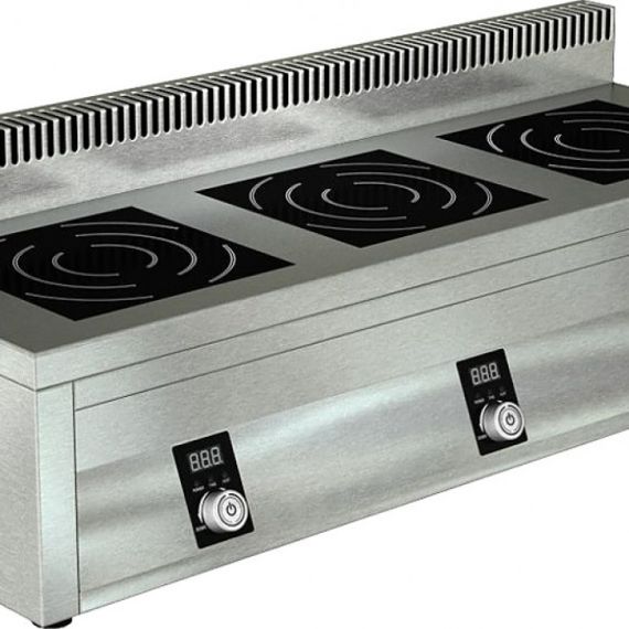 1200х550х400мм, Плита 3конфорочная вок, столешница из нержавеющей стали марки AISI 304 толщиной 1,2 мм, корпус из нержавеющей стали марки AISI 430 толщиной 0,8мм. Мощность 3х3,5кВт, ВОК диаметром 300мм, борт высотой 100мм, питание 380В. Толщина стеклокерамики 6мм. 9 уровней мощности. Поставляется в собранном виде., для ИПВ-310111 подходят подставки СПИ-033/1204, СПИ-837/1204, СПИ-834/1204, МН-90/1205, МН-91/1205