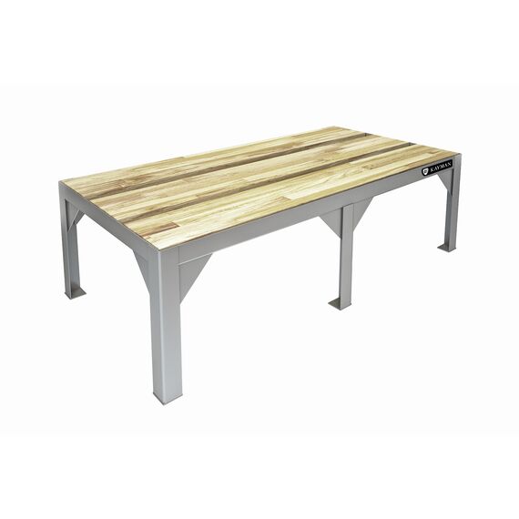 1500х1000х300, каркас сварной, уголок черного металла покрашенный порошковой краской серого цвета 40*40, толщиной 2мм, рабочая поверхность деревянный настил, нагрузка до 700 кг,