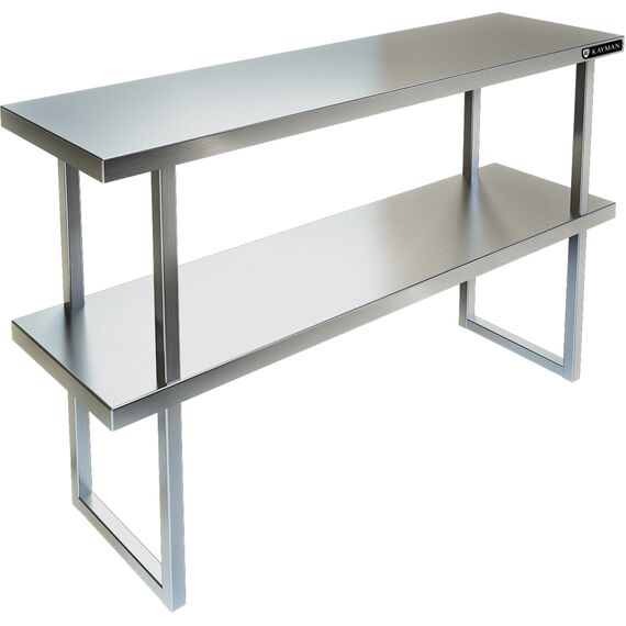 500х300х800 Полка настольная для столов со столешницей ЛДСП разборная из нержавеющей стали марки AISI 430 толщиной 0,8мм, с усилителем, 2 яруса. Боковины (стойки) из трубы 20х20 нержавеющей стали марки AISI 430 толщиной 1,2мм. Крепление к столу болтовое через отверстие в столешнице. Полка поставляется в разобранном виде. вес5,8 кг