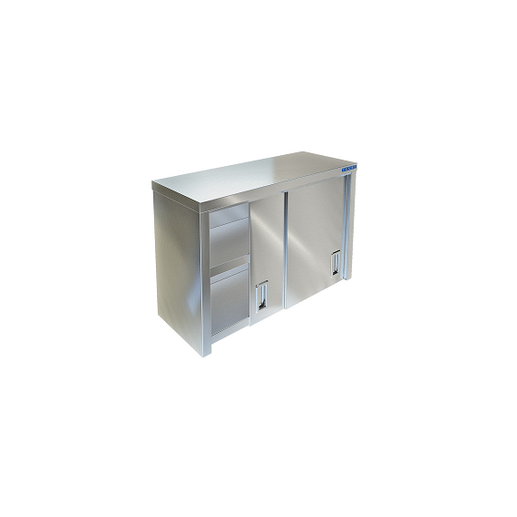 1000х350х600мм, Полка-шкаф настенная сварная из нержавеющей стали марки AISI 304 толщиной 0,8мм, две двери-купе, внутри полка, задняя стенка оцинкованная сталь толщиной 0,55мм. Имеет накладки с вырезом замочная скважина для крепления к стене. Полка поставляется в собранном виде.