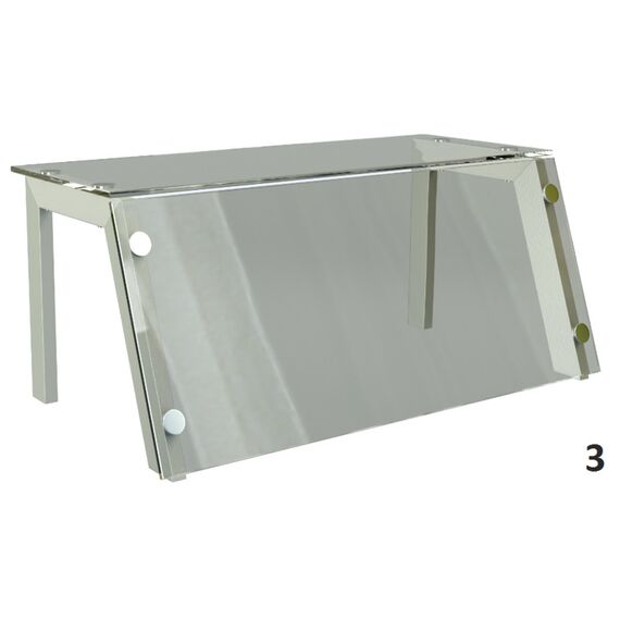 1460х420х400мм, Полка верхняя из нержавеющей стали марки AISI 304 толщиной 1,2мм и каленого стекла толщиной 8мм, Л-образная. Теплый свет, мощность 17,3Вт. Поставляется в разобранном виде. Скрытый монтаж.
