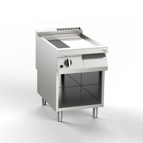 600х900х900 мм, 130 кг, газ 14 кВт, 1/3 рифленая хром, 2/3 гладкая хром, на открытой подставке, термостат нерж. сталь Aisi 304