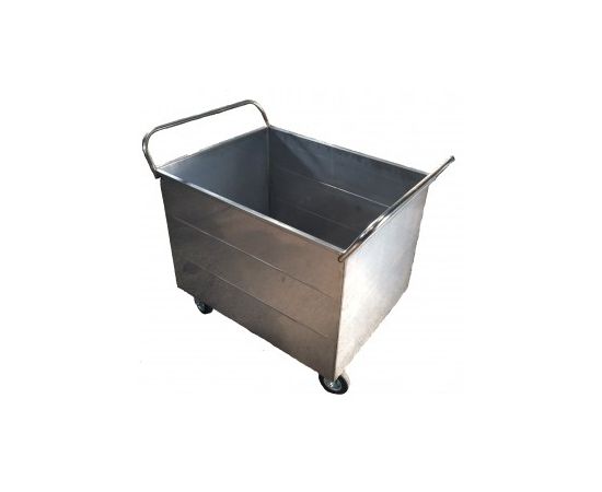 Выполнена из нержавеющей стали высокого качества и окантовкой для удобства перемещения и эксплуатации. Тележка установлена на 4 поворотных колеса, диаметром 125 мм. Возможна модификация тележки с одной или двумя ручками. При транспортировке для экономии места возможна установка «одна в одну».
