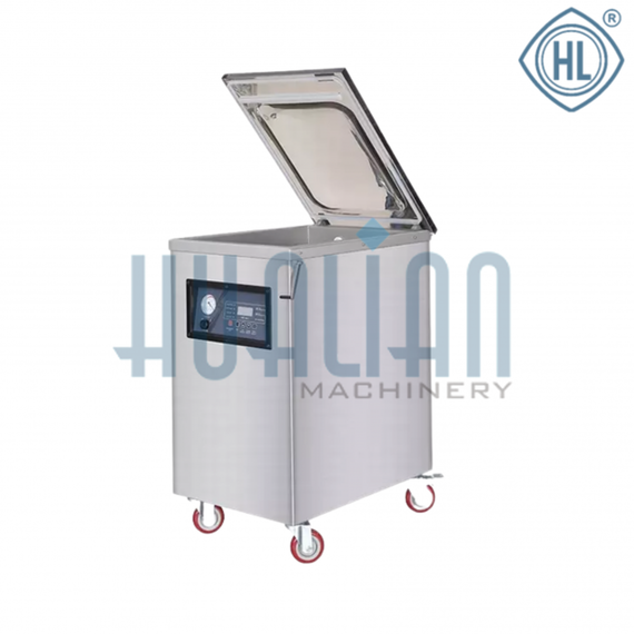 Аппарат для вакуумной упаковки DZ-400/DC имеет глубокую вакуумную камеру в форме чаши. Большое расстояние между запаечной планкой и противоположной ей стенкой камеры позволяет производить упаковку габаритной пищевой продукции. Он отлично подходит для упаковки разнообразной птицы, мяса, сыров и пр. Вместе с тем, этот компактный вакуумник легко перемещается с места на место по полу на колесах. Вакуумные упаковщики данной линейки обладают высокой производительностью, так что их можно использовать на различных пищевых производствах.