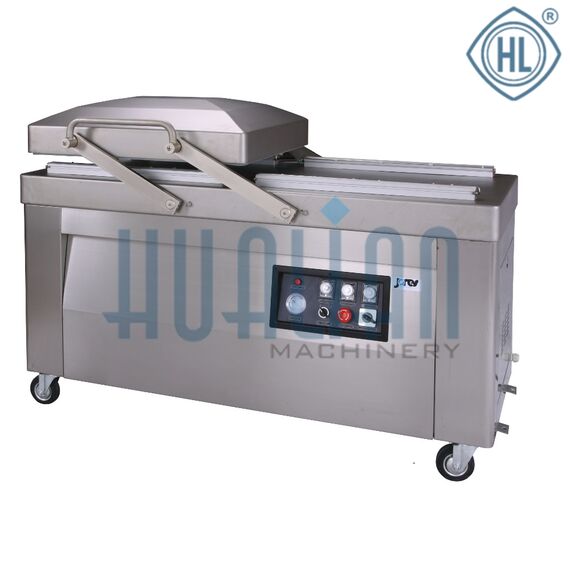 Напольный двухкамерный вакуумный аппарат HVC-610S/2A (DZ-610/2SA) предназначен для упаковки пищевой продукции в вакуумные пакеты. Каждая камера имеет по две рабочие запечные поверхности длиной 610 мм, сама камера представляет из себя прямоугольную ванну, общая высота камеры составляет 40 мм, высота камеры с крышкой – 160 мм. Аппараты могут поставляться в различных комплектациях: корпус из окрашенного металла, полностью нержавеющий корпус, нержавеющий корпус+функция газации.