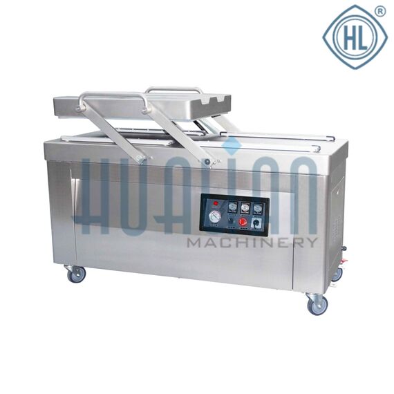 Напольный двухкамерный вакуумный упаковщик DZ-510/2SC(HVC-510S/2C) разработан на базе аппарата DZ-510/2SB. Камера здесь также плоская, основной особенностью является сама конструкция крышки и ее небольшая высота. Этот вакуумник подходит для упаковки негабаритной плоской продукции, например, снеков, нарезки и т.д. Основная идея заключается в достаточной площади камеры - для укладки максимального количества пакетов, и минимальной высоте крышки – для наиболее рациональной по времени вакуумизации, мы не используем лишнее пространство в камере и соответственное не тратим лишнее время на откачку воздуха. Рабочие размеры камеры 510*440*45 мм, мощность откачки 40м3/ч.